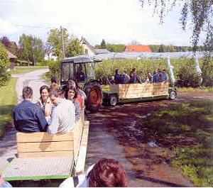 Auf ihrer Rundfahrt mit dem Beerenzügle durch unsere Gärten ...dass unsere köstlichen und außergewöhnlich aromatischen ...dass wir anstelle von Chemikalien meist "Nützlinge" einsetzen. Wie im Süden fühlen Sie sich in unserer Im Spätsommer können Sie unsere ausgedehnten Kürbisfelder bewundern und im Anschluss an die Rundfahrt, um viele Eindrücke und Informationen reicher, können Sie Kaffee und Kuchen genießen. Rundfahrten mit dem Beerenzügle ab April nach Absprache. Bitte beachten Sie die Mindestteilnehmerzahl von 25 Erwachsenen. ! |